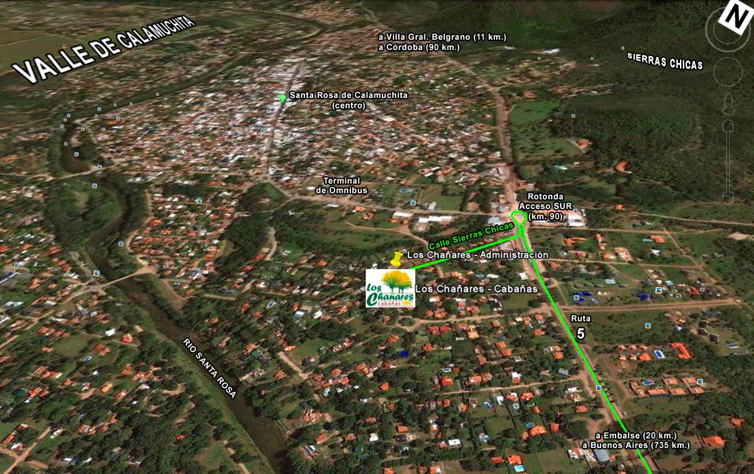 Desde el NORTE: (Córdoba - Va. Gral. Belgrano). Sobrepasar 100 mts. la tercer entrada, Ref.: Zona de rotonda acceso a terminal , sobre mano derecha altura km. 90,9. Entrando por Calle Sierras Chicas 3 cuadras (al 200).